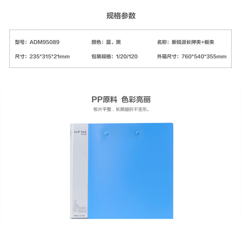 商品名稱:晨光ADM95089 文件夾 A4長押夾加板夾 新銳系列辦公資料夾會議報告夾 單個裝