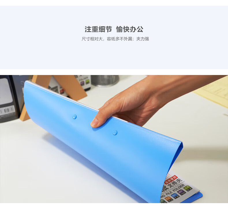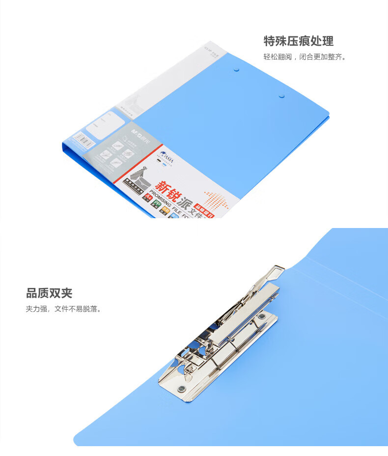 商品名稱:晨光ADM95088 新銳派A4文件夾 PP材質(zhì)彈力夾長押夾雙強力板夾+插頁袋 藍色 單個裝