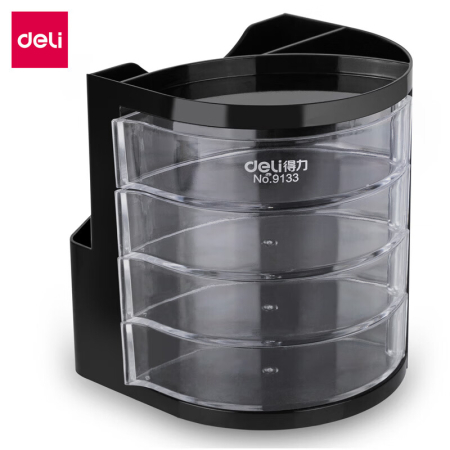 商品名稱:得力9133 四層多功能黑色筆筒 商務(wù)辦公桌面文具收納盒 單個(gè)裝