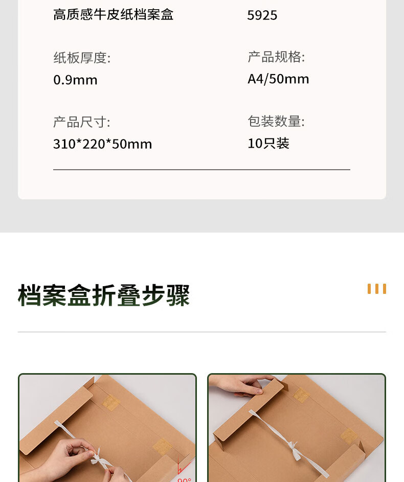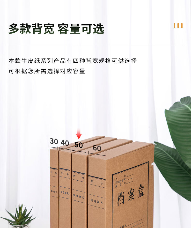 商品名稱(chēng):得力5925 牛皮紙檔案盒 50mm純漿250g加厚文件盒 財(cái)務(wù)用品 10只/包