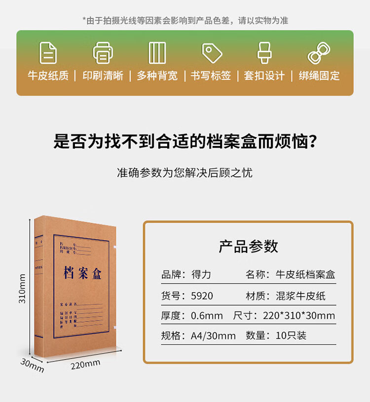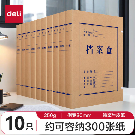 商品名稱:得力5920 牛皮紙檔案盒 30mm高質(zhì)感加厚文件盒財(cái)務(wù)憑證收納盒 10只/包