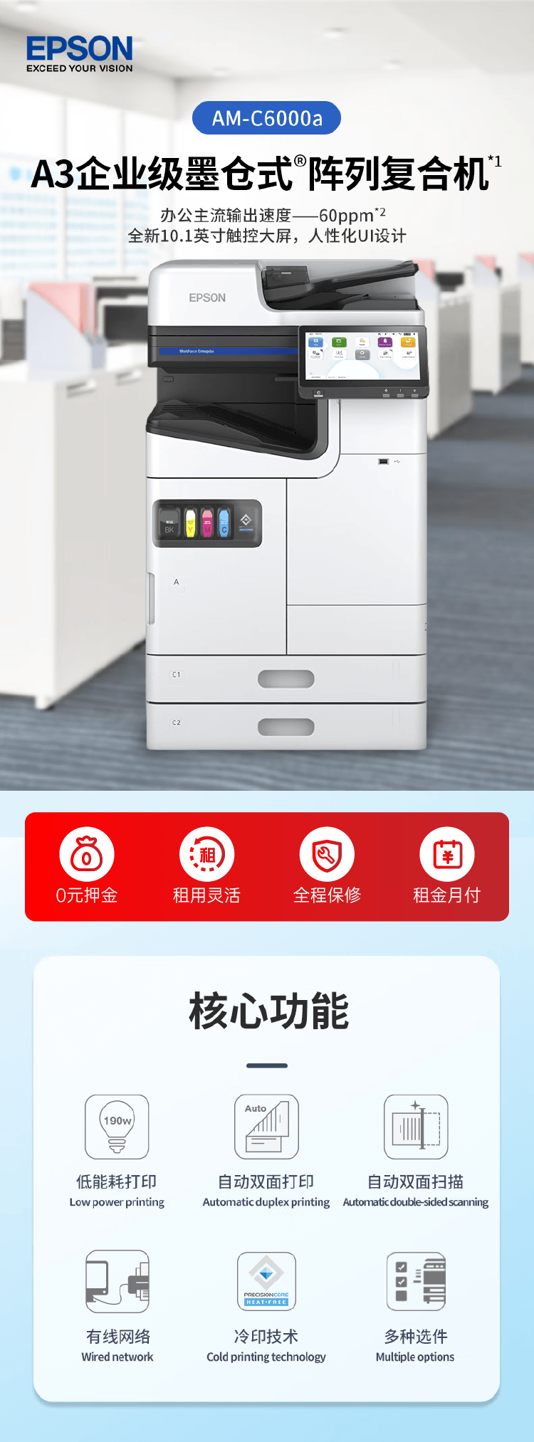 商品名稱:愛普生全新彩色復(fù)印機(jī)租賃 茂 名一體機(jī)打印機(jī)出租(月)