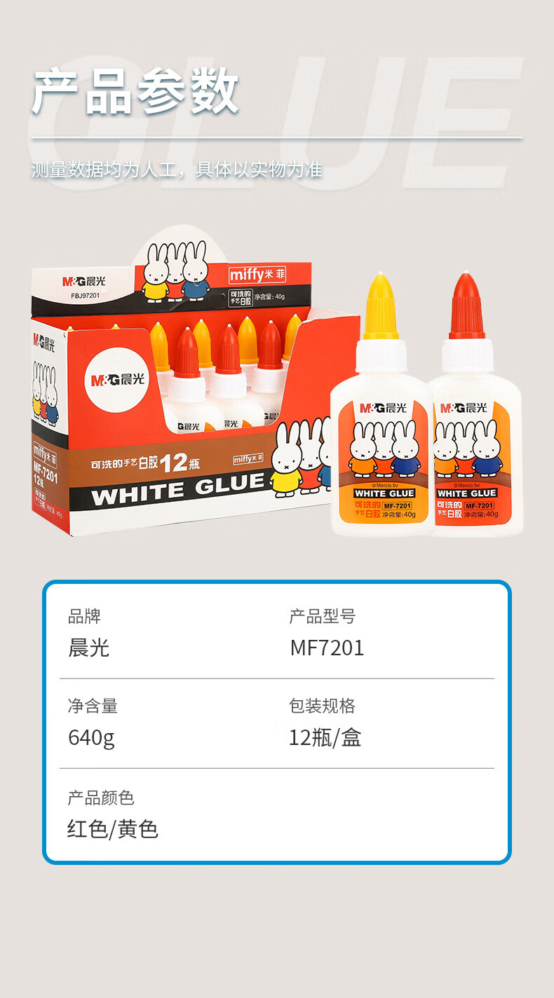 商品名稱:晨光MF7201 可水洗手工DIY白膠 40g高粘性白乳膠水 顏色隨機 單支裝
