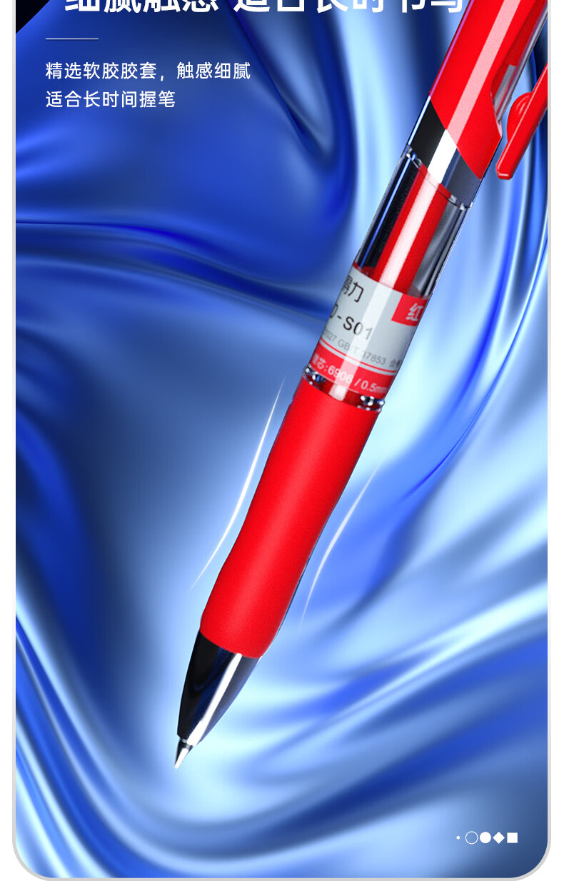 商品名稱:得力S01 紅色中性筆 0.5mm子彈頭經(jīng)典按動簽字筆水筆 單支裝