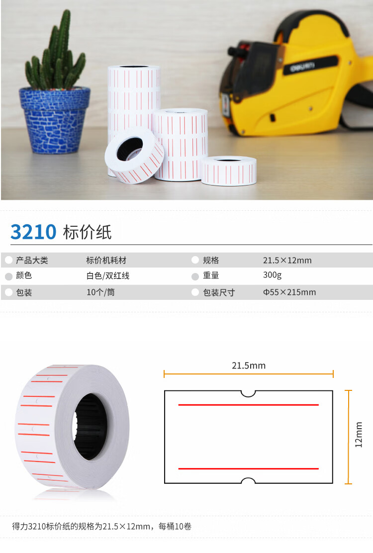 商品名稱:得力3210 單排標價紙 21.5*12mm通用價格標簽紙 10卷/筒