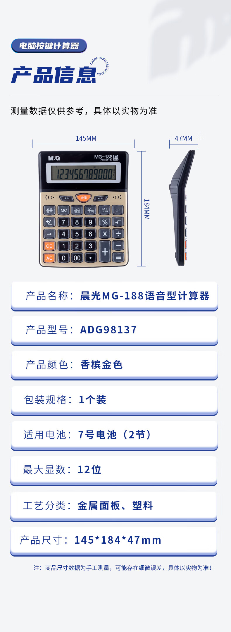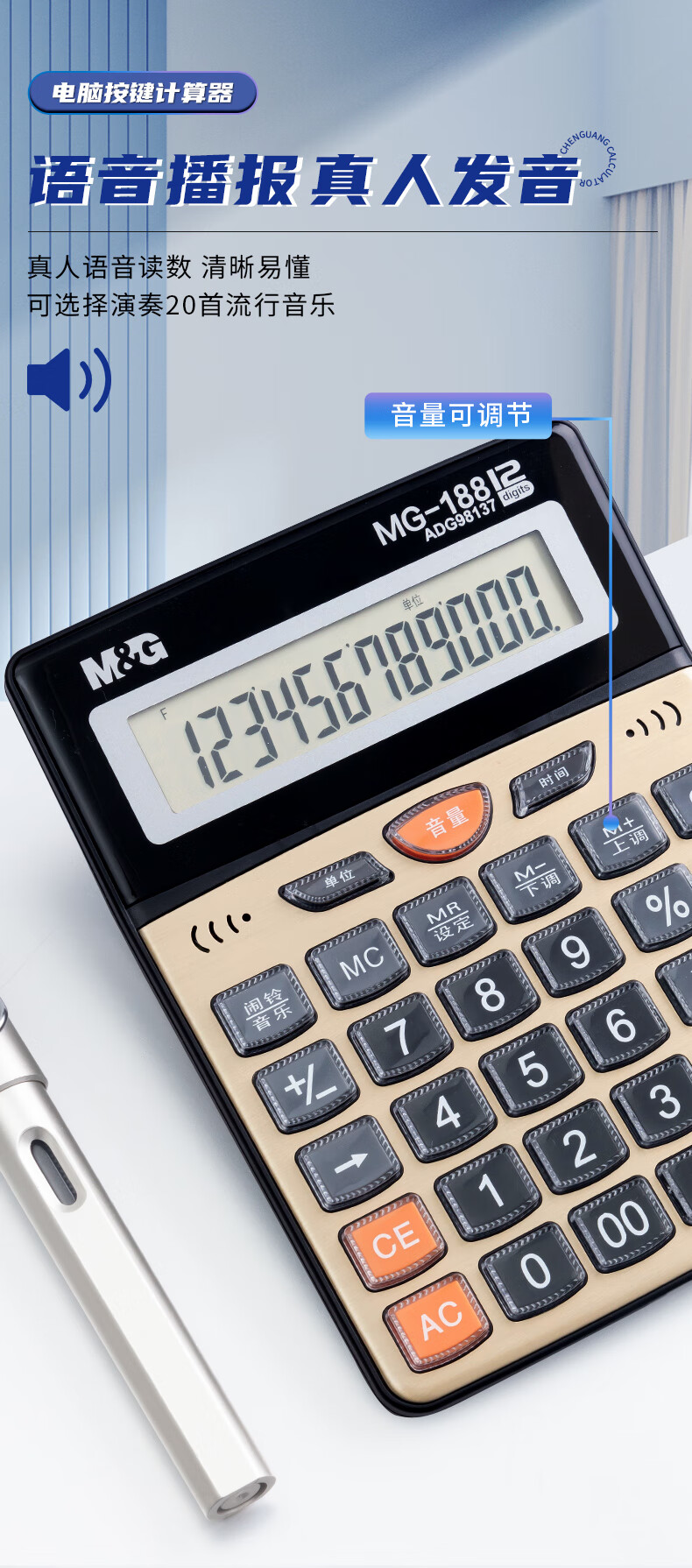 商品名稱:晨光ADG98137 金色金屬面板計(jì)算器 語音型桌面計(jì)算機(jī) 12位大屏幕 單個(gè)裝