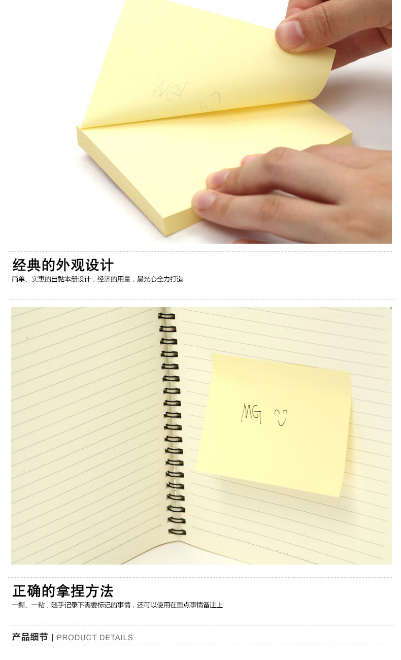 商品名稱:晨光YS-04 便利貼 3X4優(yōu)事貼 100頁自粘黃色留言貼便簽紙76X102mm 單位:本