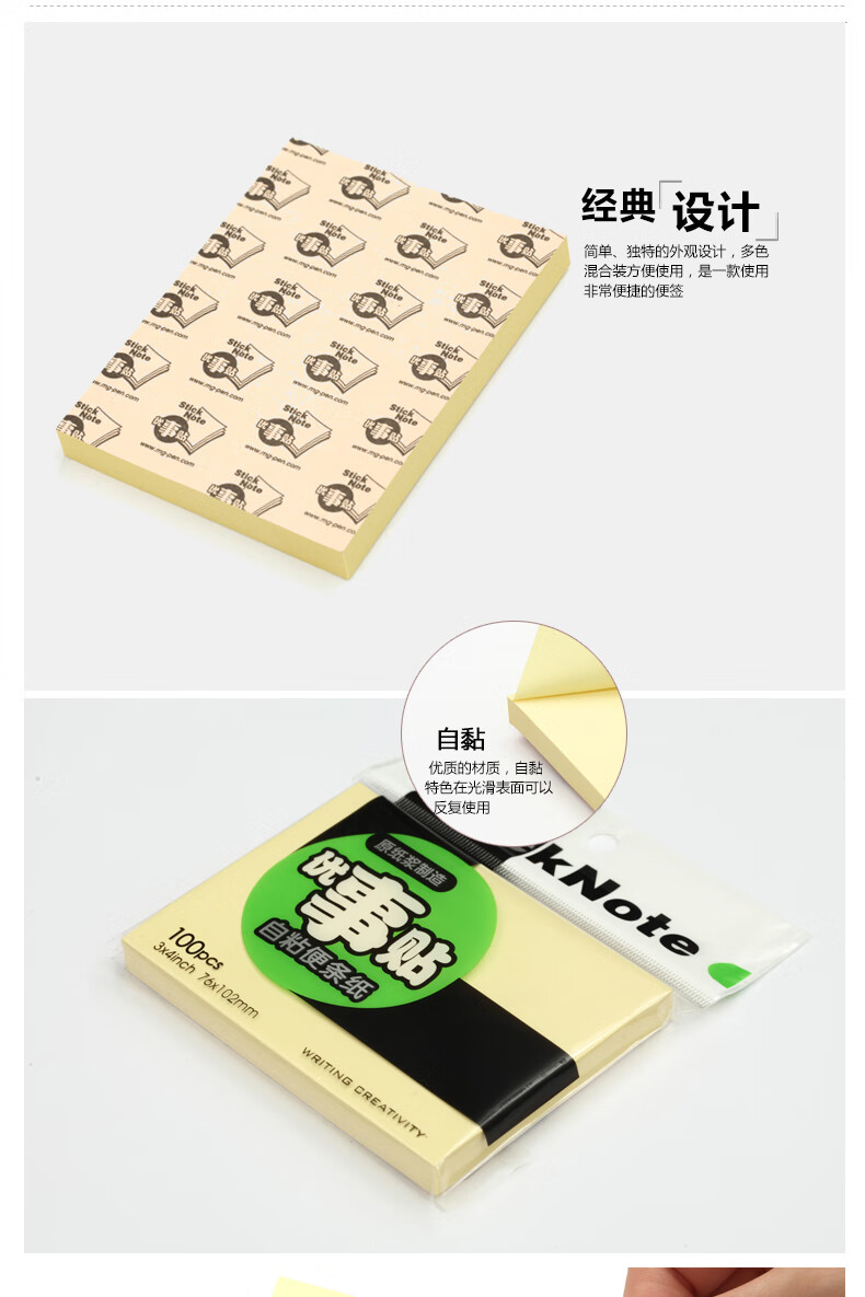 自營晨光YS-04 便利貼 3X4優(yōu)事貼 100頁自粘黃色留言貼便簽紙76X102mm 單位:本