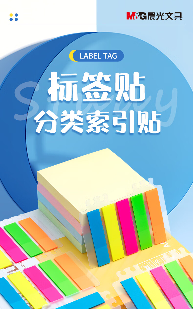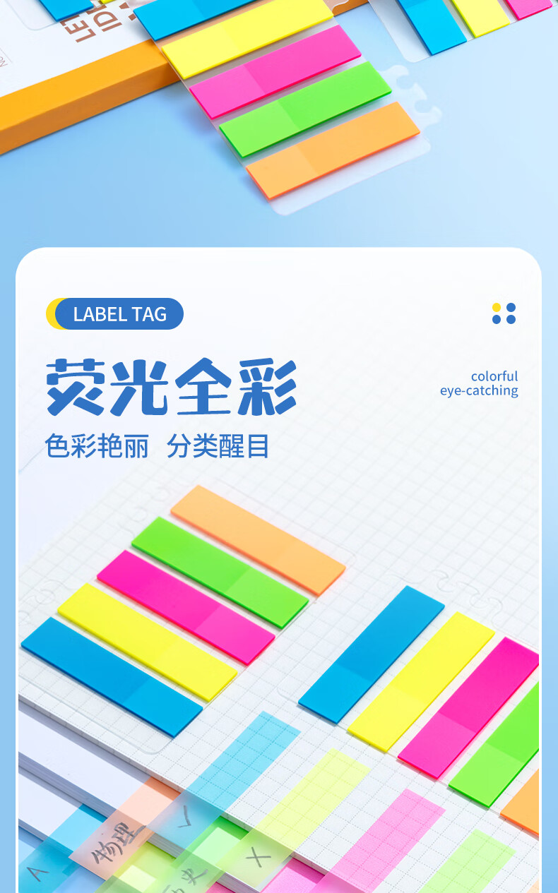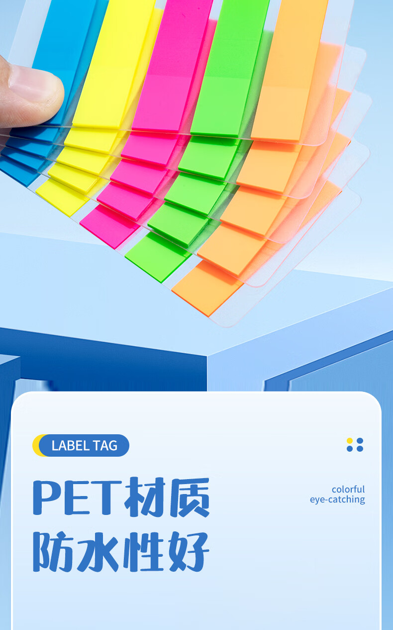 商品名稱:晨光YS-20 熒光便利貼 5色100枚PET粘性姓名貼 記事留言貼優(yōu)事貼 單位:包