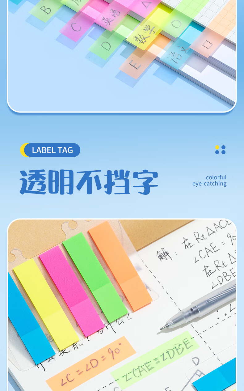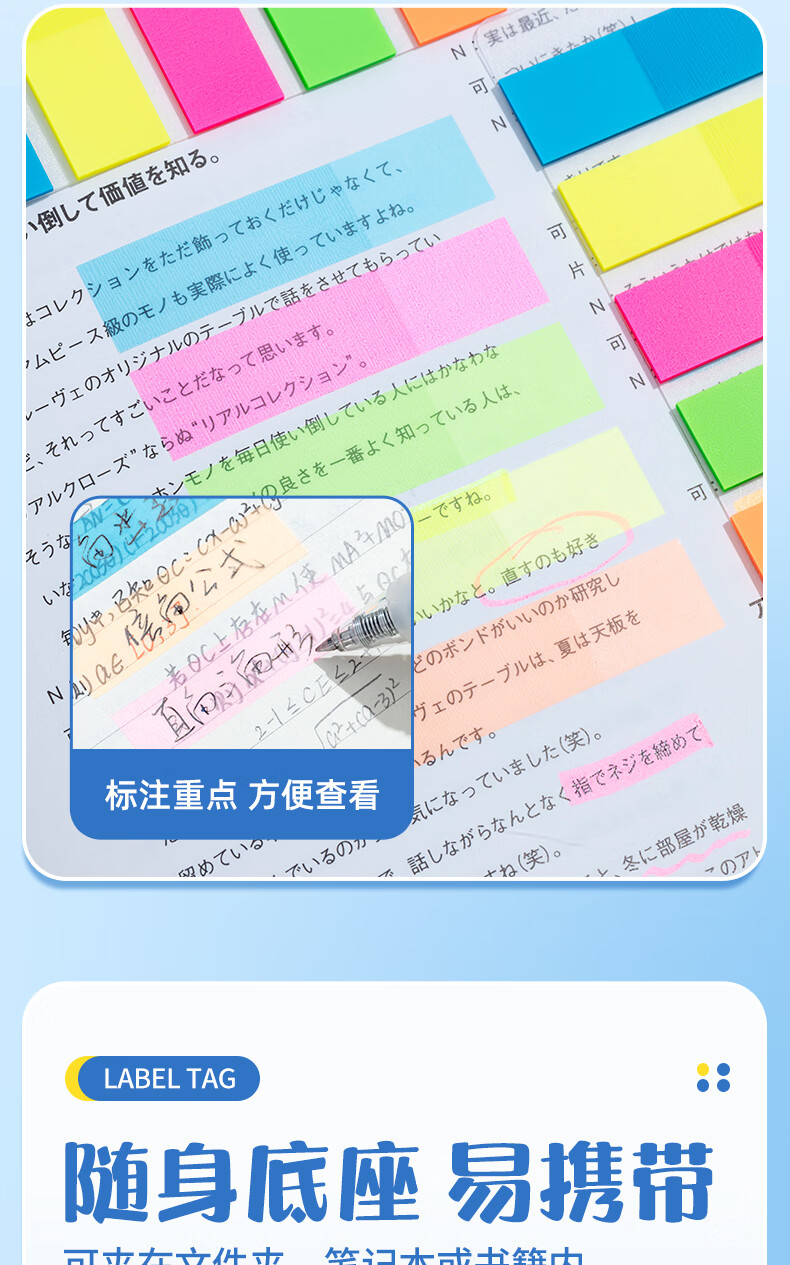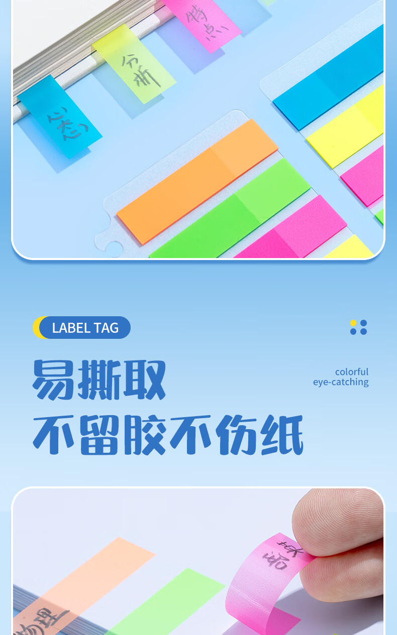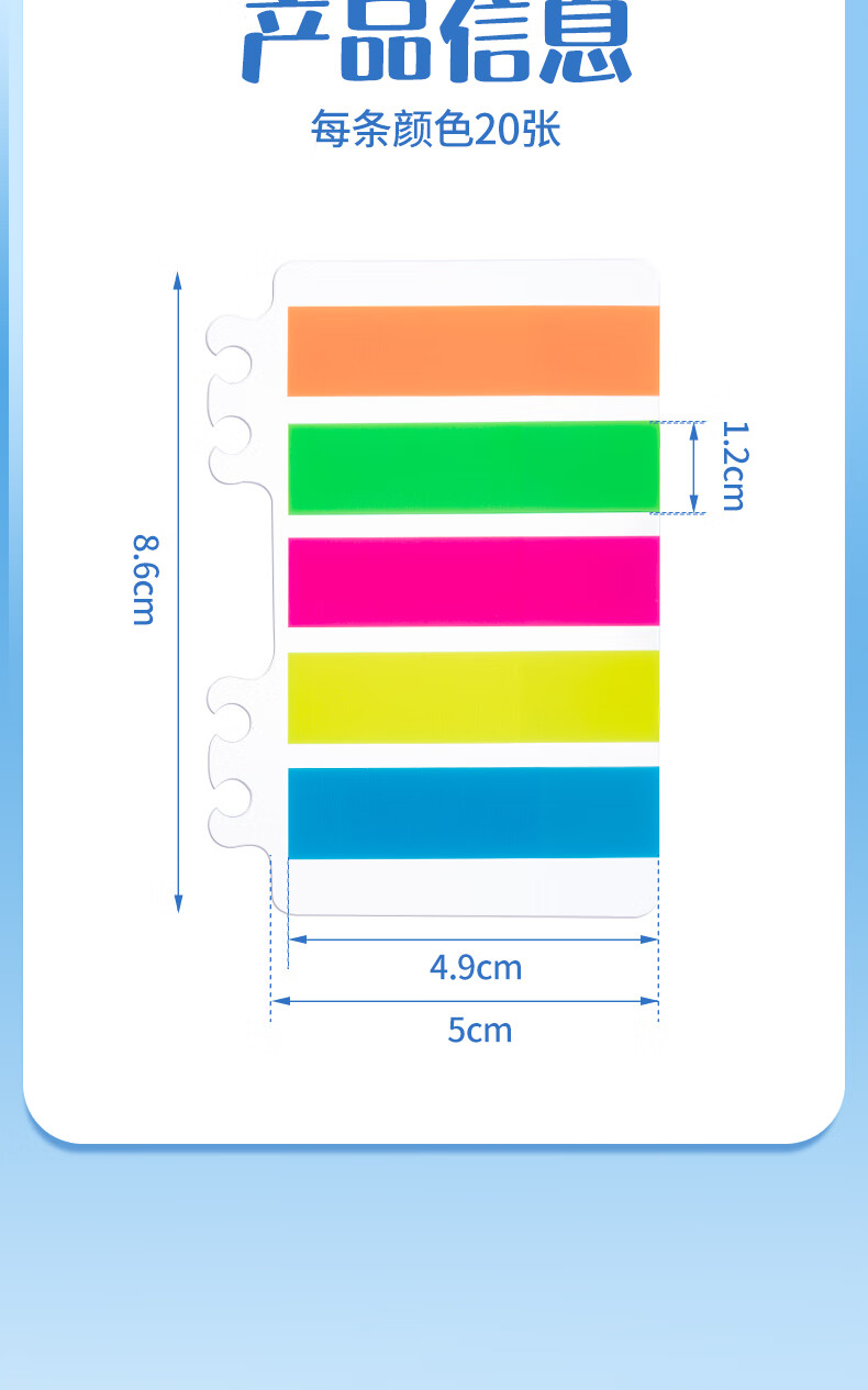 商品名稱:晨光YS-20 熒光便利貼 5色100枚PET粘性姓名貼 記事留言貼優(yōu)事貼 單位:包