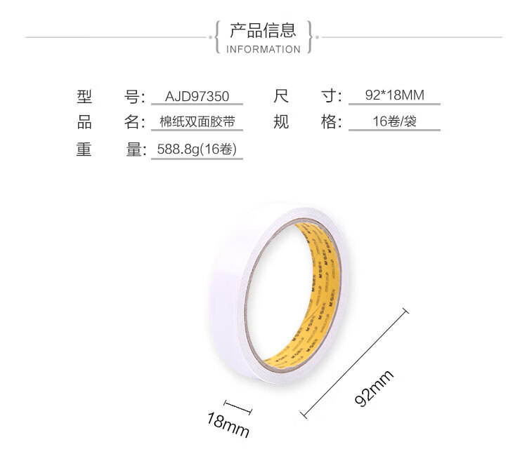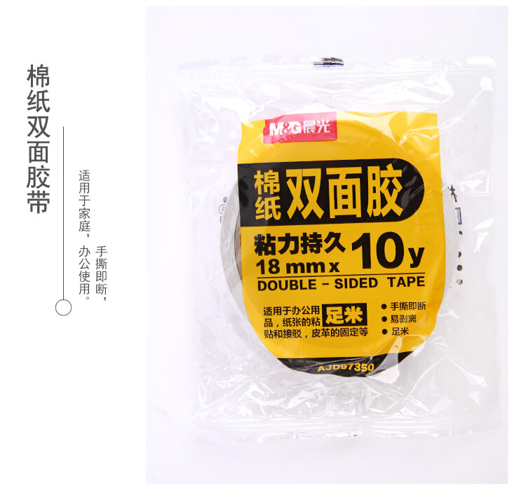 商品名稱:晨光AJD97350 雙面膠 高粘性棉紙雙面膠帶 18mm*10y(9.14m/卷) 單卷裝