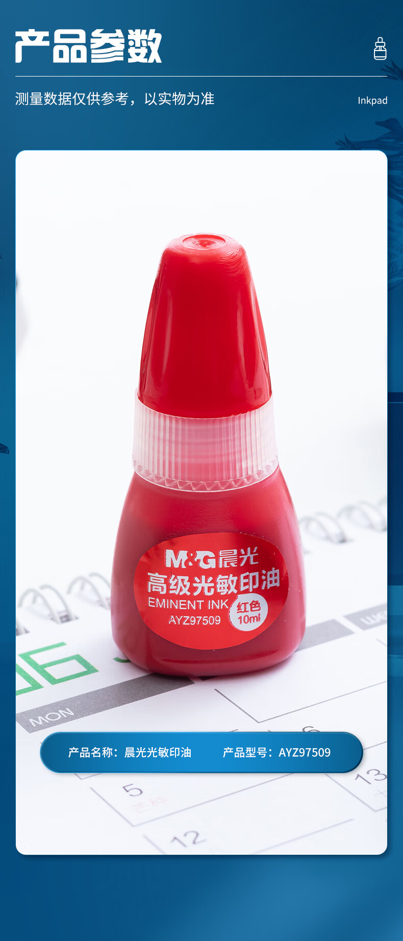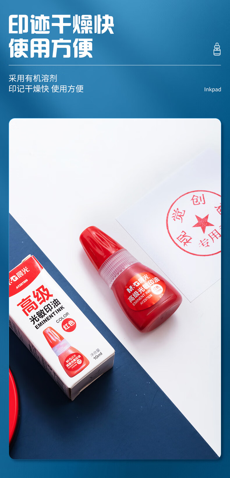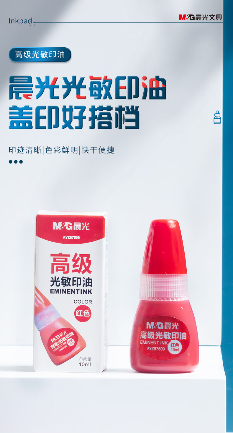 商品名稱:晨光AYZ97509 光敏印油 10ml財務(wù)紅色印章印臺印油 單瓶裝