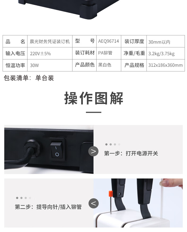 商品名稱:晨光財(cái)務(wù)憑證裝訂機(jī) 省力型票據(jù)打孔機(jī) 膠圈膠裝器 單臺(tái)AEQ96714