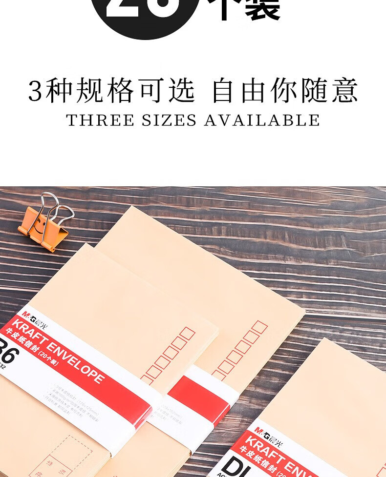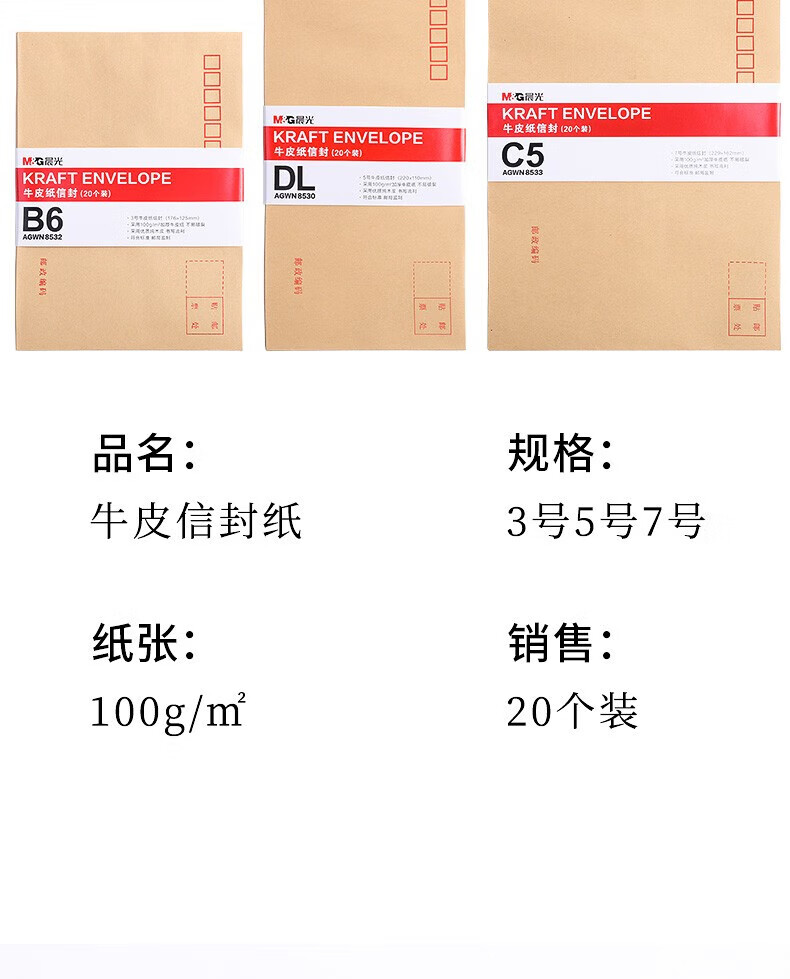 商品名稱:晨光C5牛皮紙信封 7號(hào)信紙袋增值稅發(fā)票工資袋 20個(gè)/包AGWN8533