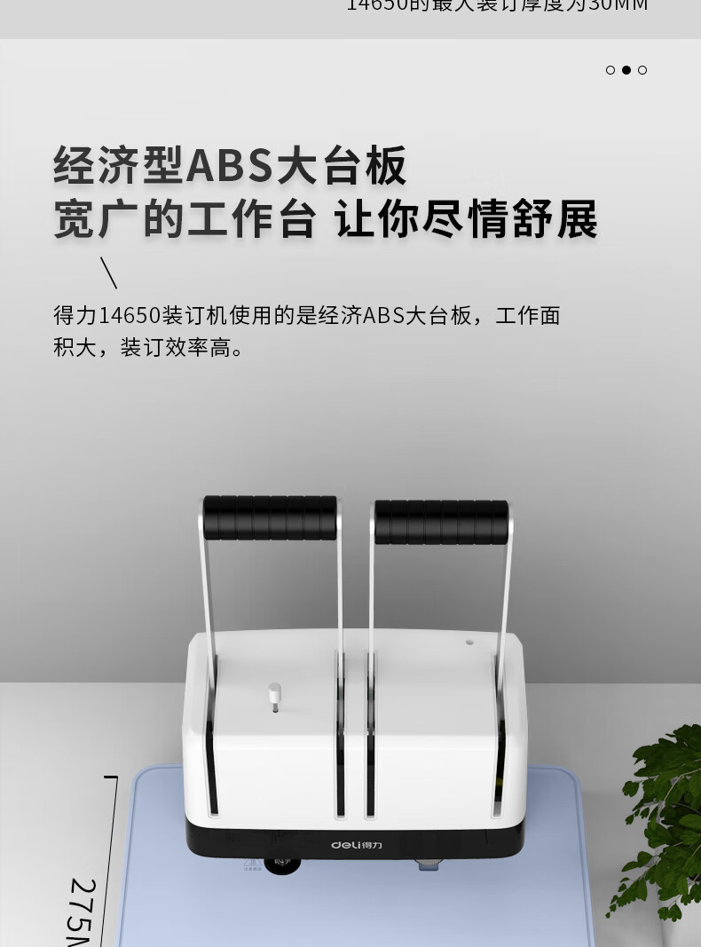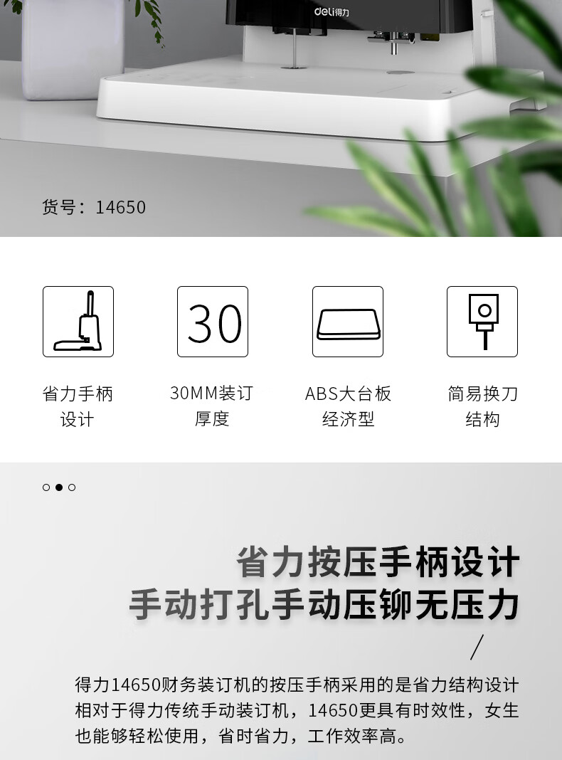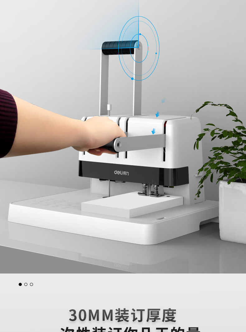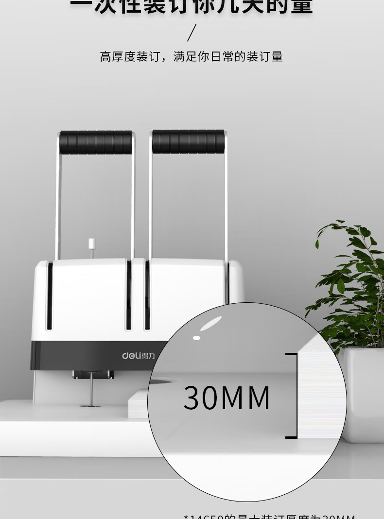商品名稱:得力30mm鉚管熱熔裝訂機(jī) 300頁(yè)手動(dòng)財(cái)務(wù)裝訂打孔機(jī) 14650