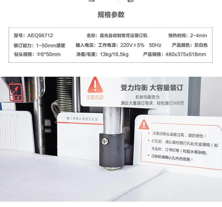 商品名稱:晨光自動財務憑證裝訂機 膠圈裝訂機 夾條打孔機 單臺裝AEQ96712