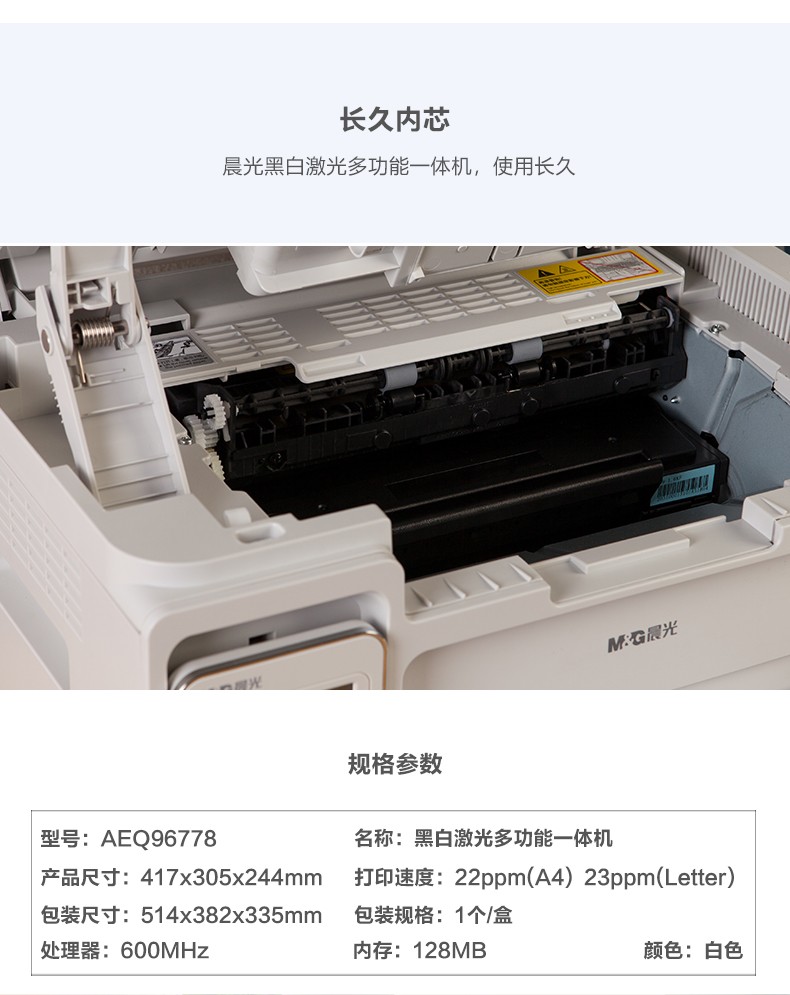 商品名稱:晨光AEQ96778 打印機(jī) A4黑白激光多功能一體機(jī)
